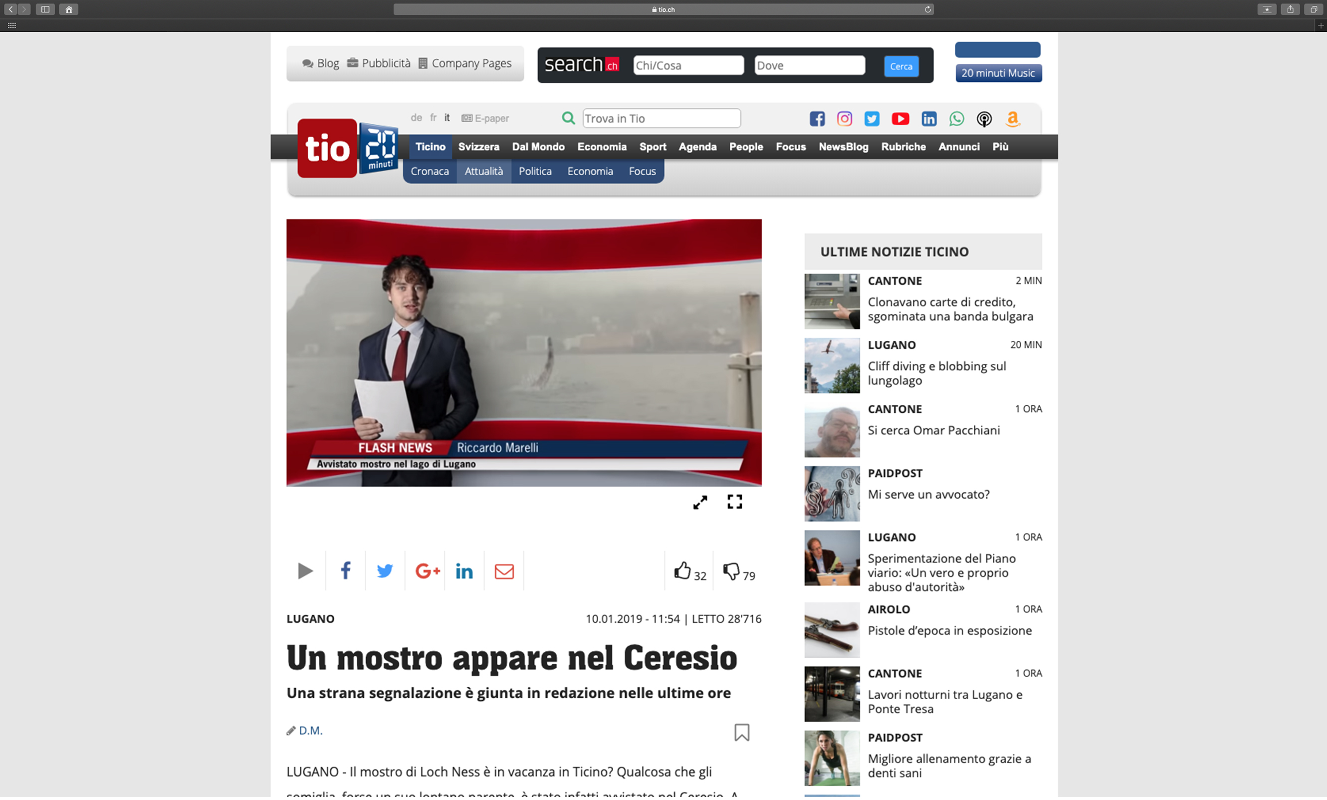 È stato pubblicato in rete un incredibile e stupefacente videoclip che ritrae un animale vissuto circa 230 milioni di anni fa. Si tratta del Ceresiosaurus. L’avvistamento nel lago di Lugano ha provocato curiosità e stupore tra gli abitanti.